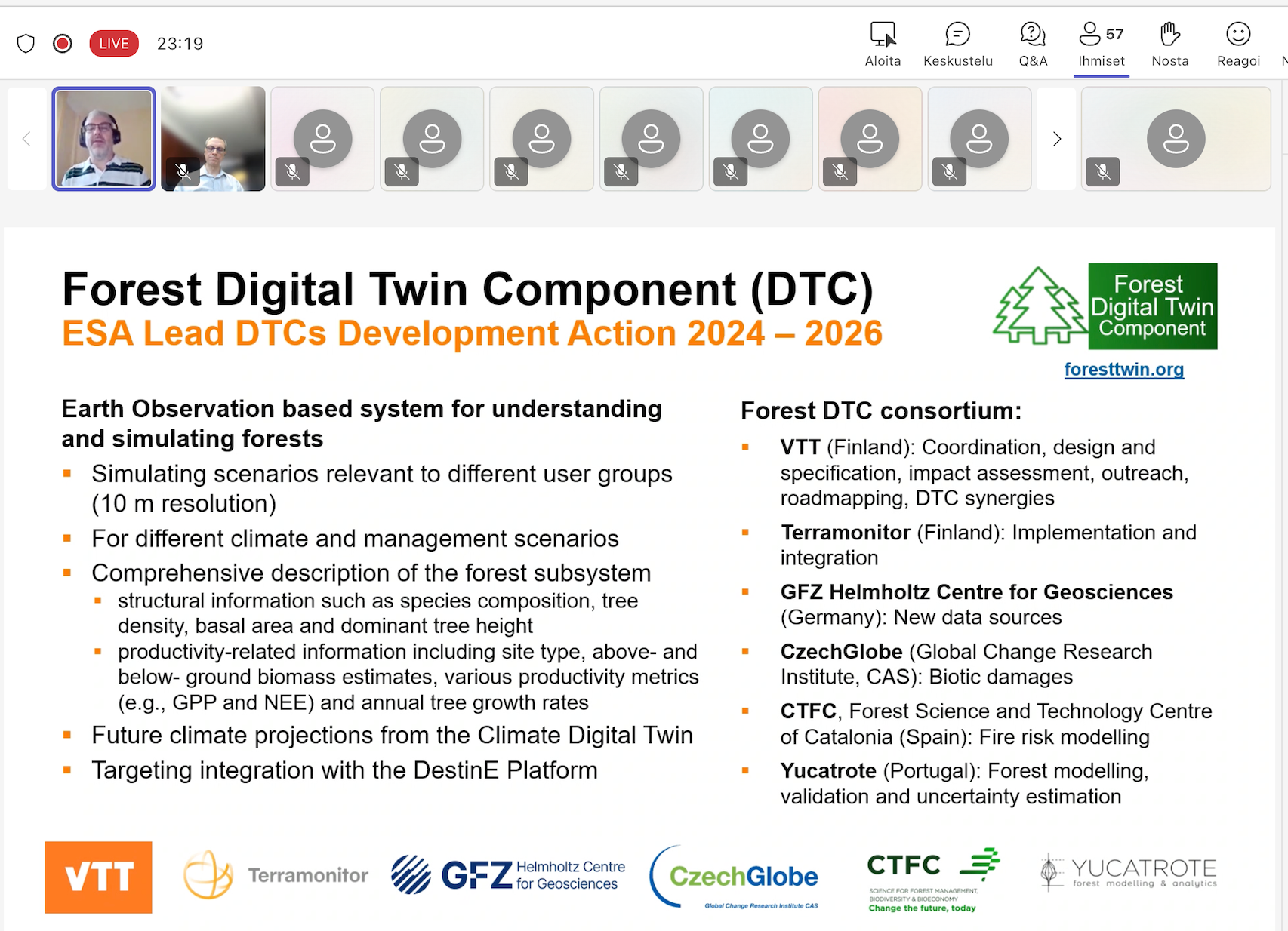 The Forest Digital Twin Component — Forest DTC -project achieved a major milestone on Thursday 28th October by publicly introducing the first live prototype demonstration of the system with project stakeholders and possible future end-users with about 60 participants from all over Europe.